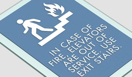 in case of fire, elevators are out of service - no braille