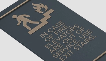 in case of fire, elevators are out of service... w/no braille