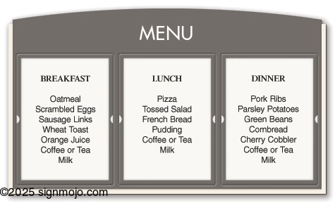 - Suggested uses: menus, daily activities, or upcoming events.